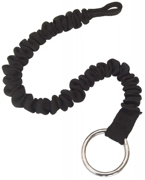 Der Bungee-Cowtail ist schnell verstaut und eignet sich daher auch für den häufigen Gebrauch in der Schulung. Das Band beim °hf-Bungee ist gerafft 48 cm lang und dehnt sich unter Zug auf 135 cm. Das bedeutet mehr als Faktor 2,5, der stabile Edelstahl-Rundring garantiert eine reibungsfreie Auslösung.