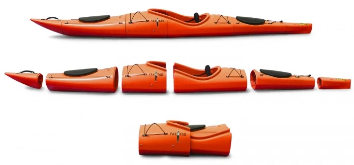 Alle Vorteile eines Feststoff-Kajaks, wie Robustheit, Performance, Kippstabilität, fest verschließbare Luken, etc. und trotzdem demontierbar und transportabel. Dank eines innovativen Verbindungs- und eines ausgeklügelten Stapelsystems in wenigen Minuten auf- und wieder abgebaut und in der Packtasche verstaut.